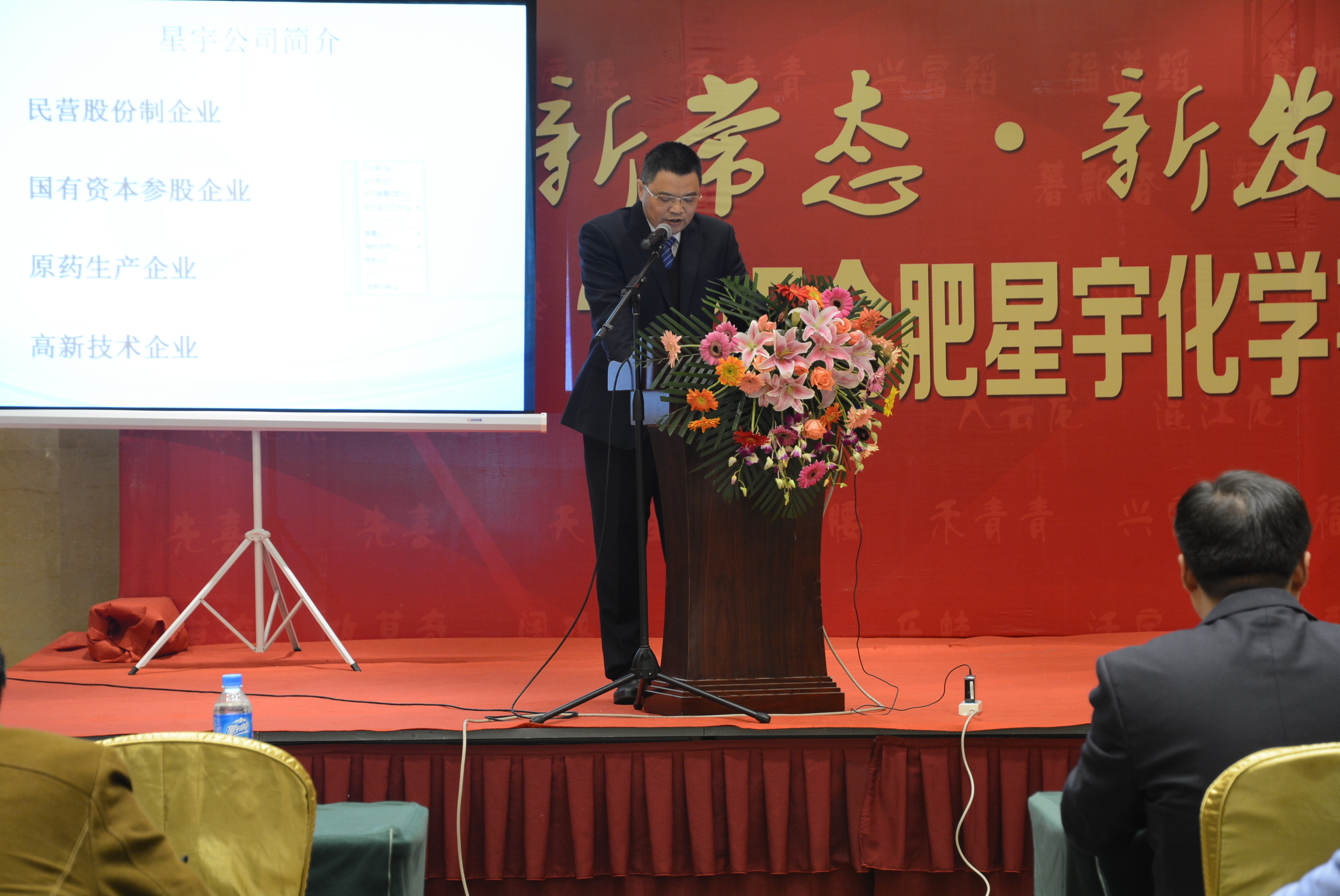 2015年11月21日,“新常態·新發展·新機遇——2015合肥星宇化學客戶訂貨暨聯誼會”在合肥豐大國際大酒店召開。參加會議的嘉賓是來自于全國各地的合肥星宇的核心銷售伙伴。公司董事長方江升、總經理何普泉出席了本次會議。會議由公司副董事長鮑恩付主持。