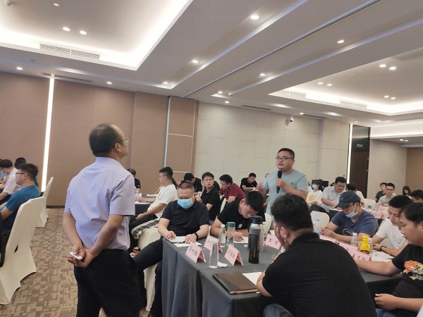 市場部部長張尚應、華南大區方育華、黑龍江大區張成節進行現場互動,談談自己的理解和看法,業務經理們向聶老師提問,聶老師就每個人提出的問題進行解疑答惑。
