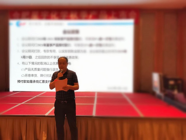 會議接近尾聲,河南省區(qū)經(jīng)理王會會介紹本次會議政策。客戶積極簽訂有關(guān)協(xié)議,最后由山東省省區(qū)經(jīng)理朱正龍宣讀會議成果。