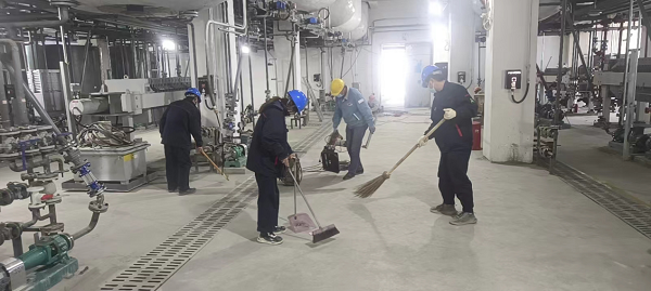 在生產現場,副總經理徐文軍時常說的一句話就是:人要勤,活要細,注重細節;重點區域勤打掃,垃圾多時突擊掃。起初一車間內部施工作業、試生產準備工作交叉進行,建筑垃圾隨處可見,后來在徐文軍的帶領下,一車間改頭換面,不僅變得干凈整潔,還在保障安全的前提下,有效助力項目投產工作。