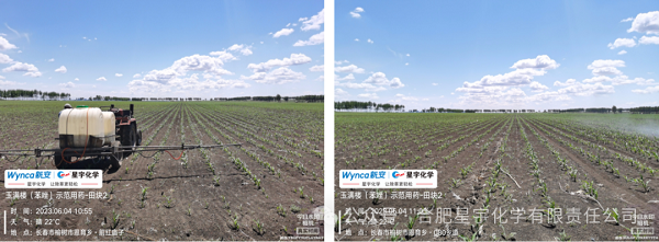 在玉米3-8葉期,雜草2-4葉期時莖葉噴霧處理,每畝兌水15-30公斤均勻噴霧。