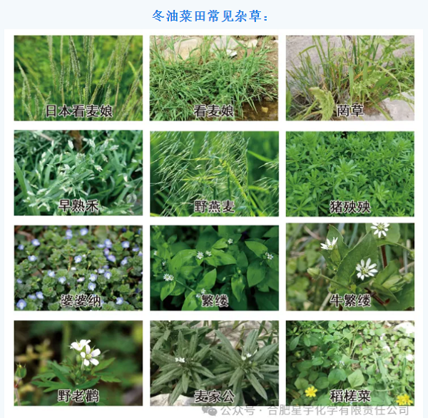 冬油菜田的雜草通常在油菜整地移栽后3-5天(直播油菜田整地后5-7天)開始出苗,10月下旬至12月上旬為冬前出苗高峰,一般是看麥娘等禾本科雜草先出,豬殃殃、牛繁縷等闊葉雜草后出,在11月中下旬出現(xiàn)高峰。這批雜草出苗量約占油菜全生育期雜草的70%-80%,是造成雜草危害的主體,對(duì)油菜生長(zhǎng)和產(chǎn)量影響****。